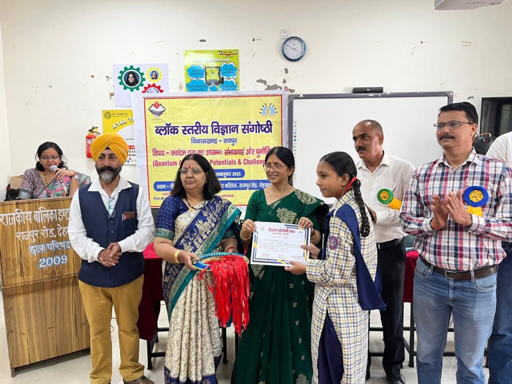 देहरादून, 8 अक्टूबर। जनपद देहरादून के विकासखंड रायपुर के माध्यमिक विद्यालयों की विकास खंड स्तरीय विज्ञान संगोष्ठी का आयोजन आज पी एम श्री राजकीय बालिका इंटर कॉलेज राजपुर रोड देहरादून में किया गया।